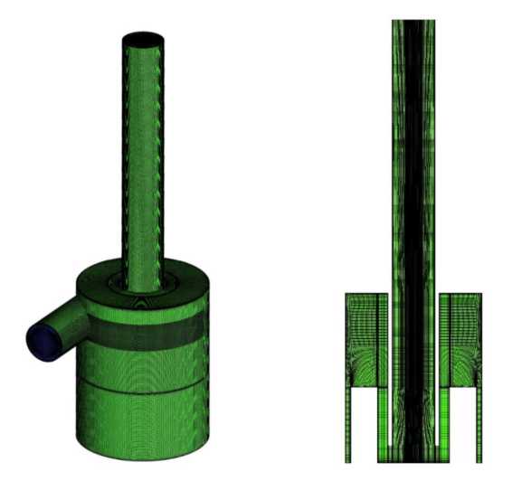 Рис. 2. Расчетная сетка проточной части фильтра с высотой магнитной системы 60 мм: а – поверхностная сетка; б – разрез объемной сетки